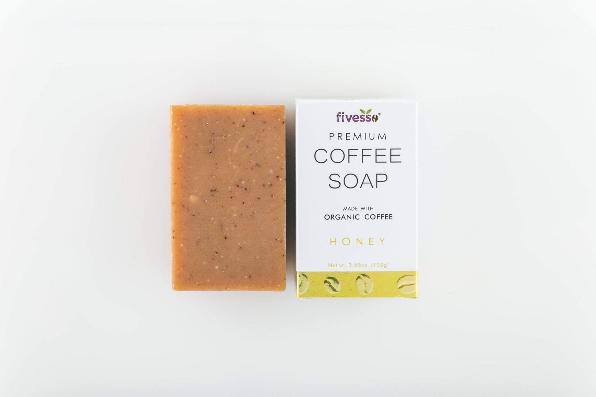 The Fivesso Honey Coffee soap bars are all made with natural and organic ingredients. The organic soap bars are handcrafted in large batches and cured in wooden curing racks to rest for 6 to 8 weeks before being certified safe to use. We take proper care making sure that each soap bar reaches our premium standards before putting into the recycled Fivesso boxes so that each soap bar is personally inspected before packaging. All of our coffee soaps are handcrafted and packaged in the USA. Bar is 3.65oz.