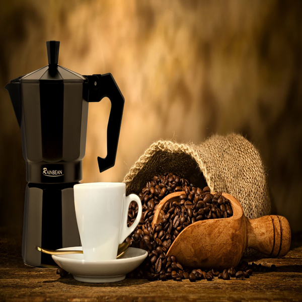 【HEALTHY AND SAFE】Food Grade Aluminum - Resilient and durable, the entire Moka Pot was crafted for a long lifetime of coffee with you. It gets better as our Aluminum is Food Safe to ensure your perfect coffee every time. High quality sealing prevent water from leaking or spilling,temperature resistant knob and handle that allow for easy, safe pouring.